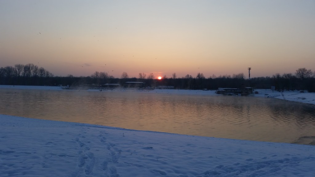 Svitanje na Adi Ciganliji. Hladno januarsko jutro je odličan trening za pohode u visoka gorja.
