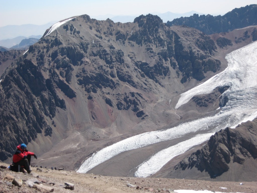 Pauza u međukampu Canada na oko 5.000mnv. Pogled na glečer Horcones i vrh Cerro Catedral 5.255mnv u pozadini.