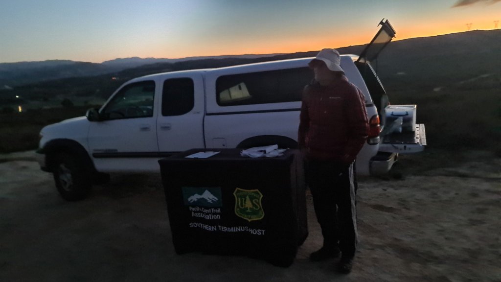 Par metara dalje je parkiran još jedan pickup. Čovek koji je dremao u njemu izlazi i upoznajem Dereka, PCT volontera iz Montane, koji će dva meseca, sa još jednom volonterkom na smenu, nonstop biti tu da upiše polaznike, da ih malo posavetuje, kaže koju mudru reč. Slušam ga par minuta, tiho priča o tome kako treba da uživam u ovoj avanturi, poštujem sebe i prirodu i ljude na trejlu. Pitam ga kad je on prošao trejl. 2012. Stavio mi je u ruku plastični bedž PCT i kao da me tapšanjem po ramenu gura ka terminusu da krenem već jednom.