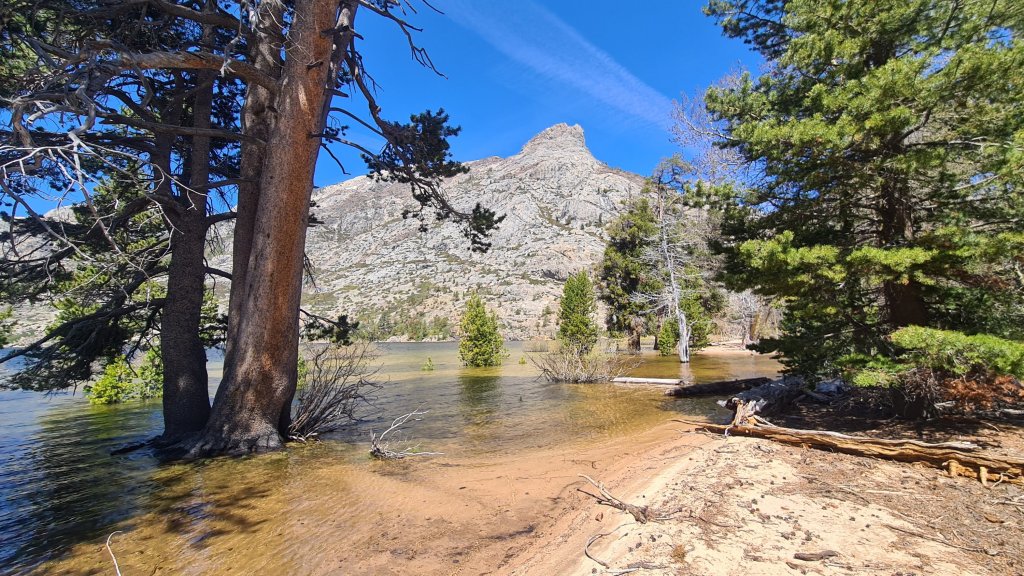 Ostatak dana sam proveo gazeći silne livade natopljene vodom koja se skoro u slapovima slivala sa okolnih padina. Da me je neko pitao u kom sam američkom nacionalnom parku, pre bi rekao da sam u Everglades na Floridi, nego u Yosemitiju. Samo su aligatori falili da ugođaj bude potpun. Sneg se topi punom parom i ništa više ne može sprečiti leto koje je tu iza ćoška. Naredni kutak koji smo dugo isčekivali bili su istoimeni prevoj i jezero Benson. Nekoliko hajkera sa više iskustva u Sierri nam je ukazalo na ovo jezero kao najlepše na PCTju. Kroz gustu šumu punu komaraca smo stigli do jezera i čuvene plaže, koju još zovu i “Rivijera Sijere”. Predivni žućkasti pesak samo se nazirao kroz skoro pola metra vode kojom je bio potopljen. Izgleda da i Rivijera otvara sezonu za mesec, dva tek. Jezero je prepuuuno tako da ćemo ten nabacivati negde drugde.