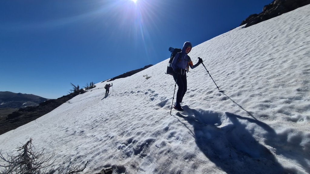 Od onih 9 čuvenih prevoja na ovom delu staze kroz Sierru, preostalo je još dva: Island i Donohue. Prvi je bio Island pass, koji, da nisam znao na karti da ga prelazimo, verovatno ne bi ni primetio. Delovao je pre kao velika, snegom ušuškana glečerska dolina. Sva sreća pa je sneg bio dovoljno tvrd i nije nas puno zamarao. Pre samog prevoja naleteo sam na nekoliko manjih krda jelena koji su nezainteresovano pasli pored staze. Skretanje za Devils Postpile mi je ostalo sa desne strane, ali sam imao prilike da vidim ovu interesantnu formaciju stena sa staze na narednom brdu. Nisam zažalio što ne skrenuh pola milje do tamo. Sva očekivanja ovih dana su vezana za Donohue prevoj, jer je to južna granica čuvenog Yosemiti Nacionalnog parka. Do samog prevoja su me ispratila dva mrmota koja su naizmenično špartala ispred mene, levo, desno. Na samom prevoju smo napravili kratku pauzu i krenuli da se spuštamo ka mestu gde sam već imao prilike da prošetam malo po PCT stazi pre četiri godine: Tuolomine Medows. Velike prostrane livade u okviru samog parka, desetak milja iznad Valley ili Doline, kako kratko nazivaju najposećeniji i najčuveniji deo Yosemitija. Kad sam sa porodicom 2018te bio ovde, sva ta gužva i krkljanac u Dolini su nas poprilično smorili. Ovaj Sveti gral penjanja i alpinizma svake godine poseti oko 6 miliona posetilaca. Tolika gužva u jednoj relativno maloj dolini je nezamisliva. Tamo mir i spokoj verovatno mogu da dožive samo ono malo sretnika i mahera koji se penju po vertikalnim liticama El Capitana. Da je bar onaj glečer pre par miliona godina znao da napravi malo veći ožiljak na Zemlji i proširi kapacitet ovog mesta. Pravi mir i doživljaj prirode mi smo imali tek pri izlasku iz Doline preko Tioga prevoja i već pomenutih livada Tuolomina. Predivna istoimena reka i oštri granitni vrhovi okolo, uz znatno manju gužvu, konačno su nam prikazali taj čuveni park u pravom svetlu.